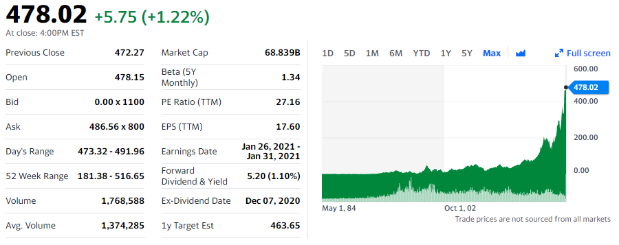 4차 산업혁명 시대에 필수 요소인 반도체는 어떠한 산업에 접목하여도 꼭 필요한 산소같은 존재가 되어버렸습니다. 이젠 정말 미래 기술이 아닌 생활에서 인공지능, 빅데이터, 클라우드, 로봇과 같은 기술들을 경험하고 있으니, 반도체 수요는 더욱 폭발적으로 성장할 것으로 전망됩니다. 몇 달 전만 하여도 하늘 같이 우러러 보던 시총 300조 대의 삼성전자는 이젠 범접할 수 없는 세계로 시총 550조 원을 가뿐히 뛰어 넘었습니다. 2021년도 반도체 슈퍼사이클을 예견하고 있는 만큼, 미국주식에서도 유망한 반도체 관련주를 살펴 보겠습니다. (자료 출처: yahoo finance)